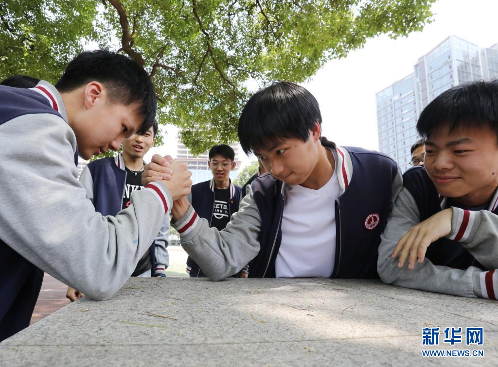 5月25日,江蘇省蘇州市第五中學的高三學生在掰手腕。