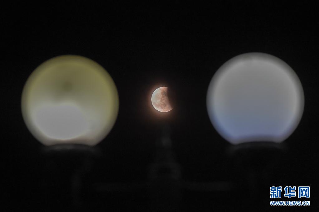 當日,本年度“最大最圓月(也稱‘超級月亮’)”與月全食(也稱“紅月亮”)浪漫“邂逅”。