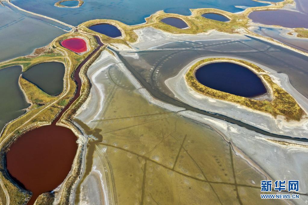 俯瞰山西運城鹽湖一角(6月1日攝,無人機照片)。