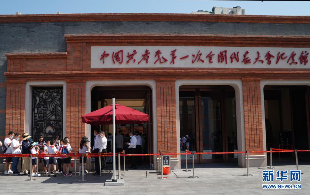 6月6日,人們在中共一大紀念館前排隊等待參觀。6月5日、6日是中共一大紀念館開館后的首個周末,紀念館迎來參觀熱潮。觀眾紛紛前來參觀“偉大的開端——中國共產黨創建歷史陳列”,了解黨的創建歷程。中共一大紀念館實行實名制、全預約參觀。新華社記者 劉穎 攝