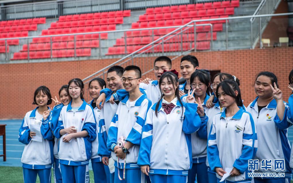 6月9日,烏當中學(xué)高三學(xué)生在操場上拍照留念。
