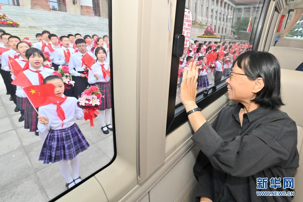 6月29日,慶祝中國共產黨成立100周年“七一勛章”頒授儀式在北京人民大會堂金色大廳隆重舉行。這是“七一勛章”獲得者張桂梅向青少年致意。新華社記者 岳月偉 攝