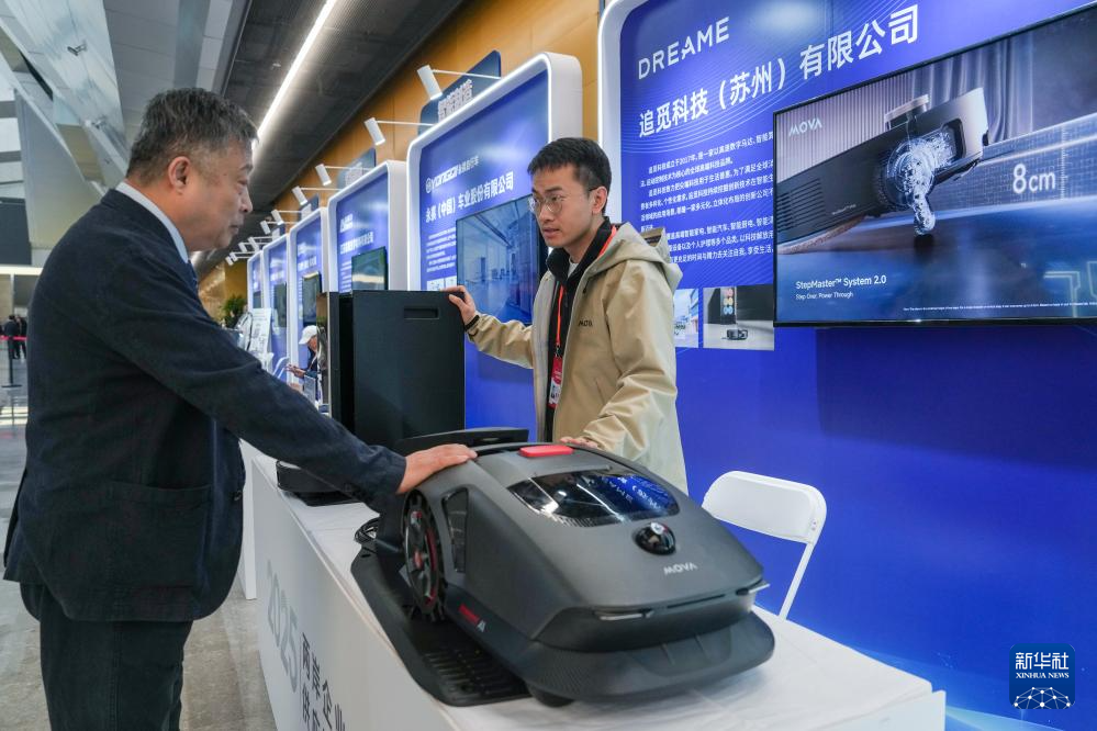 12月16日,参会者在2025两岸企业家峰会年会主会场外的展区参观。