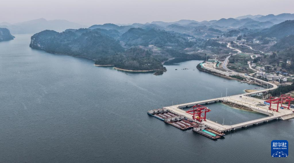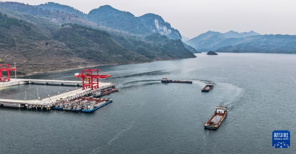 12月16日,货船停靠在瓮安港云中港区(无人机照片)。