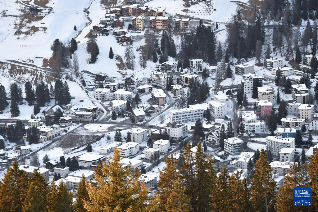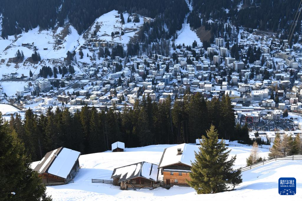 这是1月18日在瑞士达沃斯拍摄的冬季达沃斯小镇。