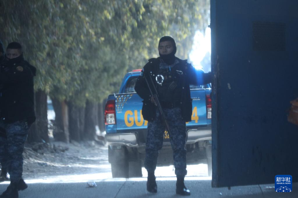 1月18日,警察在危地马拉弗赖哈内斯一所监狱门口警戒。