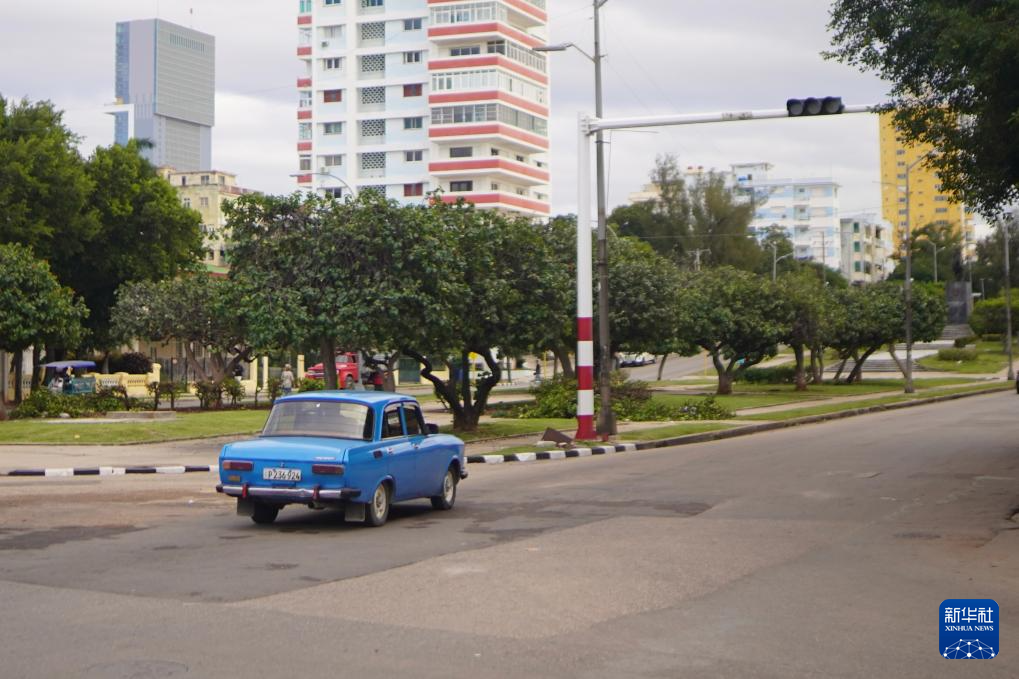 1月30日,在古巴首都哈瓦那,汽车驶过因停电而停止工作的交通信号灯。