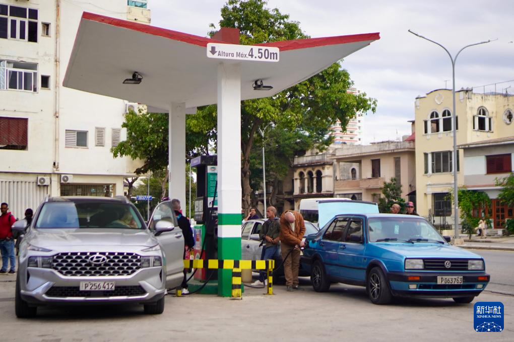 1月30日,在古巴首都哈瓦那,车辆在一处加油站加油。