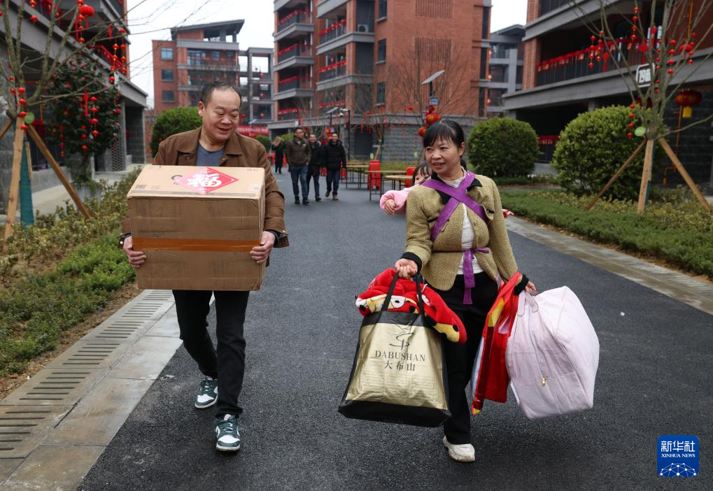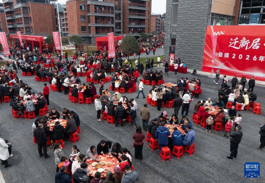 农历新年前夕,四川省宜宾市筠连县“2·8”山体滑坡灾害受灾群众陆续搬入新居。1月31日,迁入新居的群众在家门前举办百家宴活动喜迎新年。