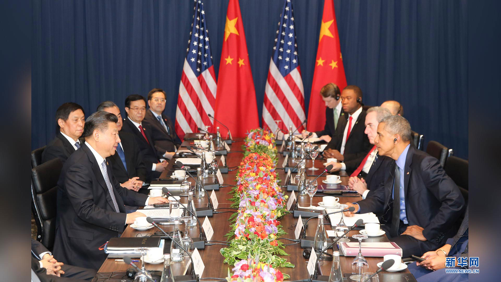 11月19日,國家主席習近平在利馬會見美國總統奧巴馬。 新華社記者蘭紅光 攝2016-11-20