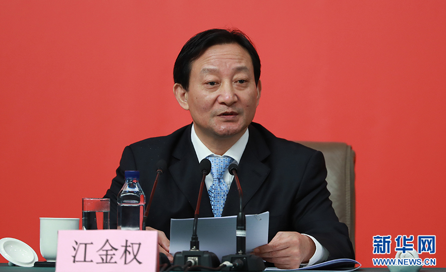 10月26日上午10:00,中國共產黨第十九次全國代表大會新聞發言人在梅地亞賓館二層新聞發布廳召開專題新聞發布會,請有關方面負責人解讀十九大報告,并回答記者關心的問題。圖為中央紀委駐國資委紀檢組組長、國資委黨委委員江金權。新華網 翟子赫 攝