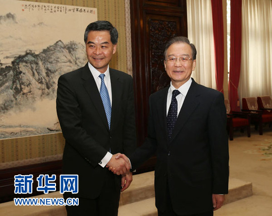 ???? 12月21日,中國國務院總理溫家寶在北京中南海會見來京述職的香港特別行政區行政長官梁振英。 新華社記者 劉衛兵 攝