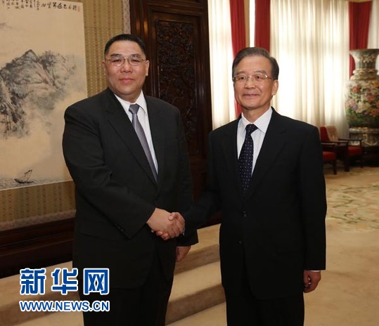 ??? 12月21日,中國國務院總理溫家寶在北京中南海會見來京述職的澳門特別行政區行政長官崔世安。 新華社記者 劉衛兵 攝
