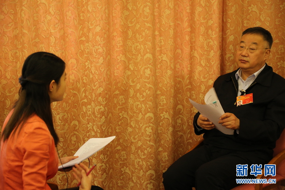 ????2015年3月15日,全國政協委員、中科院院士、氣象學會理事長秦大河做客新華網2015全國兩會特別訪談。圖為秦大河主持人的問題。