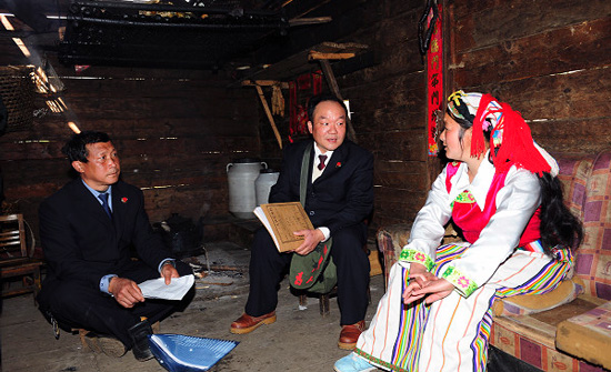 與此同時(shí),江德華還虛心向當(dāng)?shù)馗髯迦罕妼W(xué)習(xí),學(xué)會了獨(dú)龍族、怒族、傈僳族和藏族四種少數(shù)民族語言,在做好檢察官本職工作之外,他還經(jīng)常擔(dān)當(dāng)起翻譯的角色。憑借一股韌勁和鉆勁,江德華成為了新中國成立以來的第一個(gè)獨(dú)龍族檢察官,成為了貢山縣檢察院的辦案能手,成了村里人的驕傲。