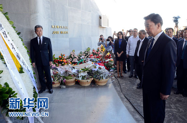當(dāng)天上午,李源潮前往何塞·馬蒂紀(jì)念館,代習(xí)近平主席向菲德爾·卡斯特羅敬獻(xiàn)花圈,并向在場的菲德爾·卡斯特羅的家屬轉(zhuǎn)達(dá)習(xí)近平主席的深切慰問。