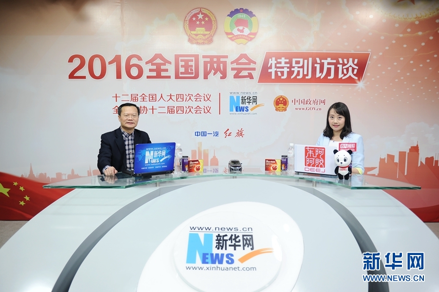 2016年3月14日,全國(guó)人大代表、湖南省益陽(yáng)市委書記胡忠雄做客新華網(wǎng)兩會(huì)訪談直播間。圖為胡忠雄在訪談現(xiàn)場(chǎng)。新華網(wǎng) 盧志佳 攝