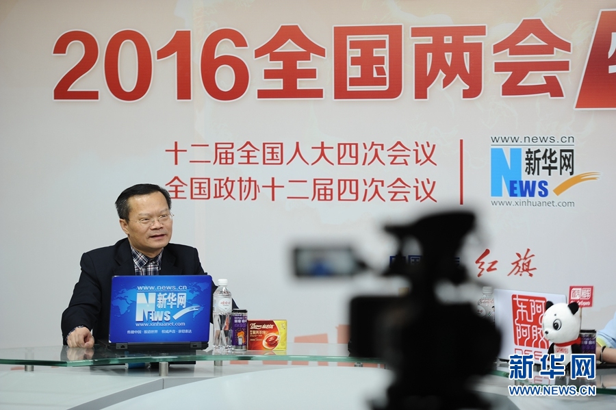 2016年3月14日,全國人大代表、湖南省益陽市委書記胡忠雄做客新華網兩會訪談直播間。圖為訪談現場。新華網 盧志佳 攝