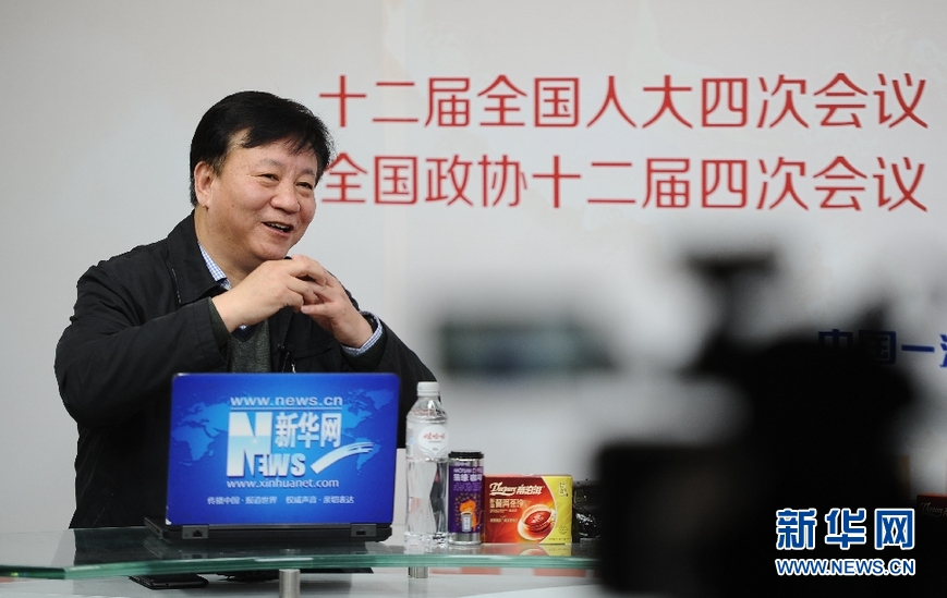 2016年3月14日,全國政協委員,天津達仁堂京萬紅藥業有限公司總經理劉文偉做客新華網2016全國兩會特別訪談,與新華網網友在線交。圖為劉文偉在訪談現場。新華網 賈海元 攝