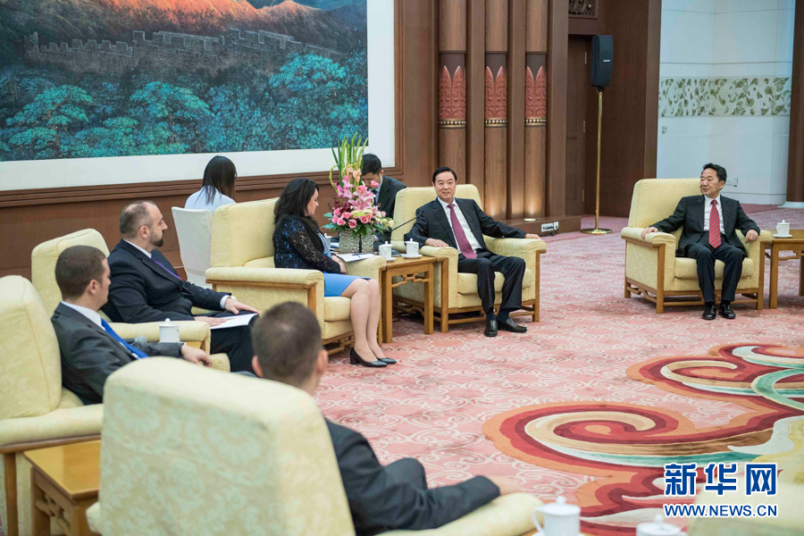 7月18日,中共中央政治局委員、中央書記處書記、中宣部部長劉奇葆在北京會見中東歐國家新聞發言人代表團。新華社記者 李濤 攝