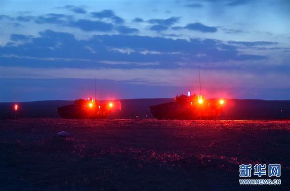 中國陸軍第一支信息化部隊、原陸軍第38集團軍某紅軍團官兵進行夜間訓練(2016年6月5日攝)。新華社發