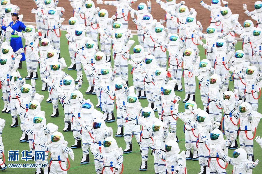 8月8日,內(nèi)蒙古自治區(qū)成立70周年慶祝大會在呼和塔拉內(nèi)蒙古少數(shù)民族群眾文化體育運動中心舉行。圖為群眾行進表演。新華網(wǎng)記者 陳杰 攝