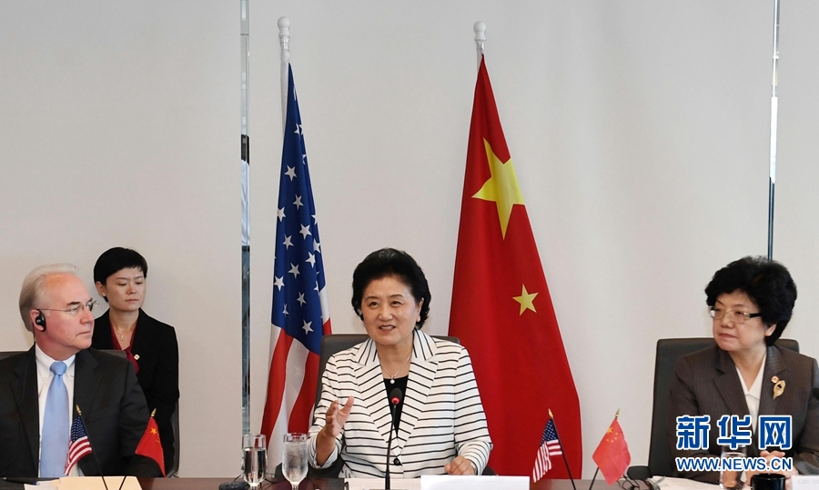 當地時間9月27日,國務院副總理劉延東(中)在美國華盛頓戰略與國際問題研究中心出席中美衛生合作研討會。新華社記者殷博古攝