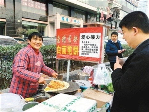 2007年,丈夫朱光偉突發腦溢血,一年的治療,讓夫妻倆早前打工攢下的十多萬元很快就見了底。“多虧學校給孩子免了學費,老師還送來衣服,周圍鄰居提米拿油沒少幫忙,我這才磕磕絆絆緩了過來。”“這情誼怎么敢忘啊,人要學會感恩!”妻子趙彥蘋說。“擺攤時,我看見有些流浪漢在垃圾桶撿吃的,我就試著給他們送些煎餅,算是一種力所能及的回饋。”
