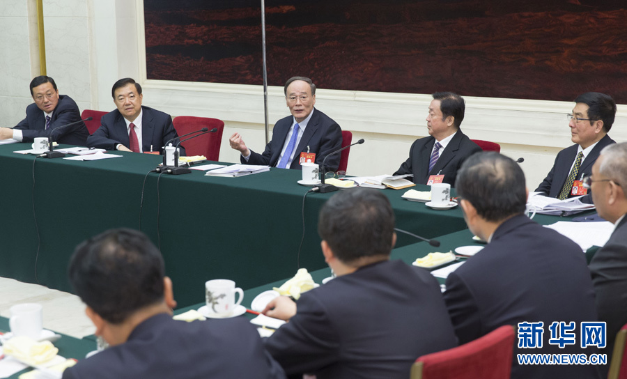 3月10日,中共中央政治局常委、中央紀委書記王岐山參加十二屆全國人大五次會議甘肅代表團的審議。 新華社記者 崔新鈺 攝