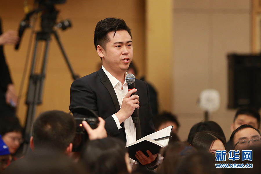 3月11日,十二屆全國人大五次會議新聞中心舉行記者會,邀請科技部部長萬鋼、秘書長徐建培就“2016年創新驅動發展戰略實施進展成效和2017年重點工作”的相關問題回答中外記者的提問。圖為深圳衛視記者提問。新華網/中國政府網 王健 攝