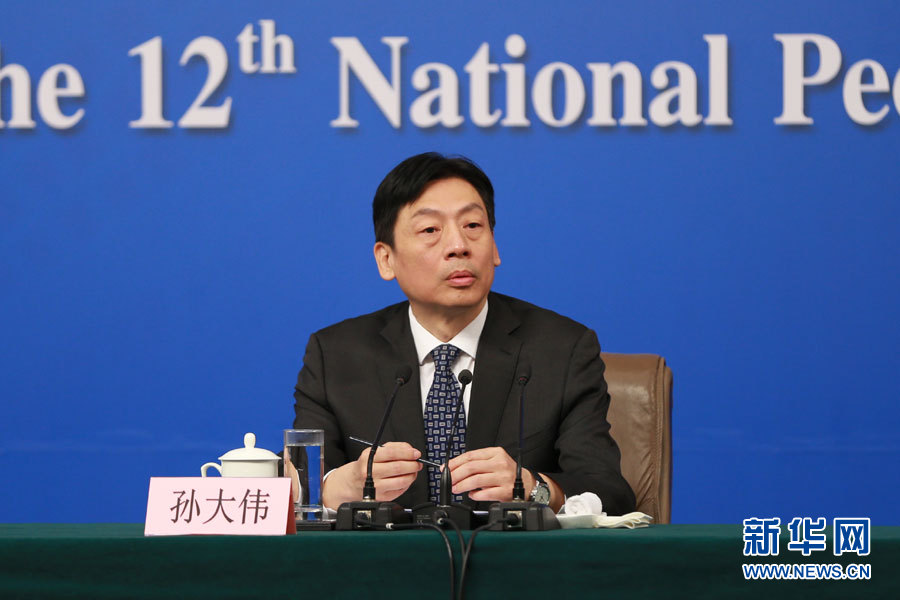 3月14日,十二屆全國人大五次會議新聞中心舉行記者會,邀請國家質檢總局局長支樹平、副局長兼國家認證認可監督管理委員會主任孫大偉、國家標準化管理委員會主任田世宏就“質量提升”的相關問題回答中外記者的提問。圖為國家質檢總局副局長兼國家認證認可監督管理委員會主任孫大偉。新華網/中國政府網 傅義洲 攝