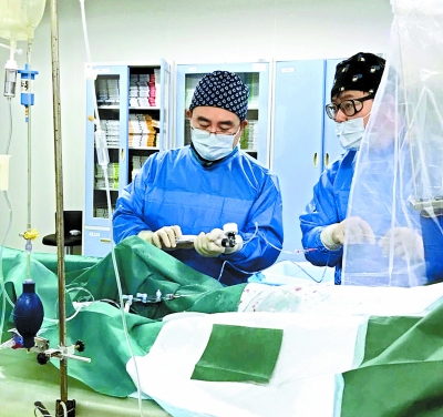 北京友誼醫(yī)院心血管中心醫(yī)生丁曉松在手術中搶救急性心梗患者。