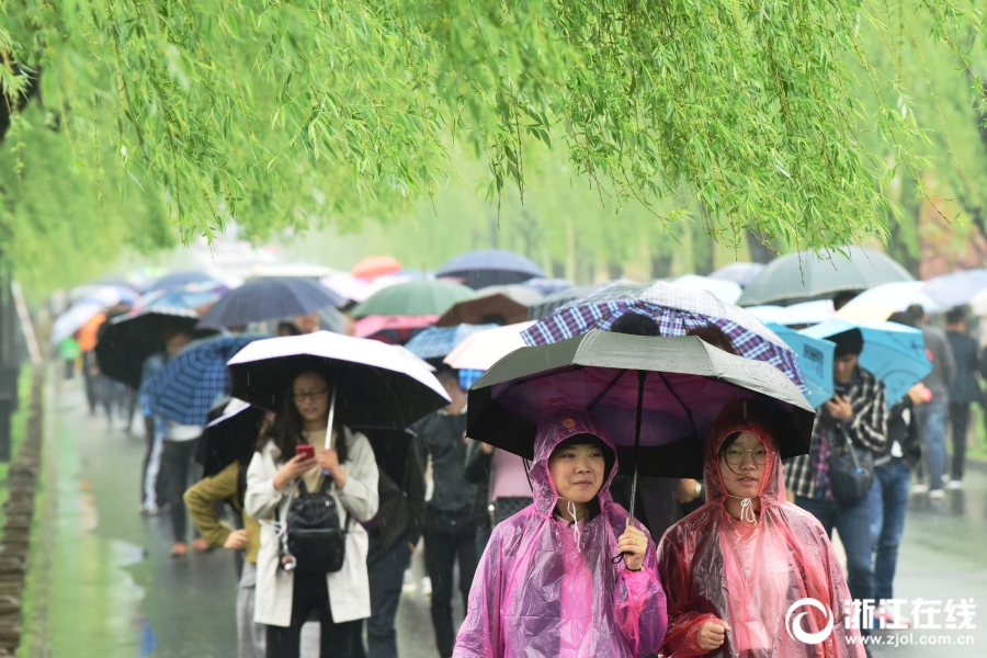 杭州:清明時(shí)節(jié)雨紛紛 西湖游客雨中游