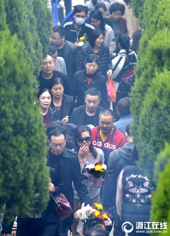 4月5日清明節(jié)上午,前往浙江省定舟山市定海區(qū)清陵掃墓人絡繹不絕,不少掃墓人用鮮花祭祀,寄托哀思懷念逝去的親人,倡導環(huán)保綠色的清明。(浙江在線拍友 胡社友 攝)