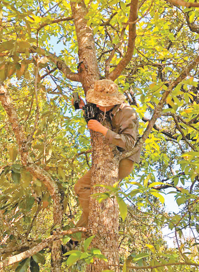 中國(guó)科學(xué)院昆明動(dòng)物研究所研究人員在安放紅外相機(jī),進(jìn)行鳥類監(jiān)測(cè)。中國(guó)科學(xué)院昆明動(dòng)物研究所鳥類學(xué)組供圖