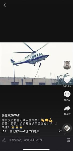 “相比文字,用視頻展現特警隊的隊伍形象和精神面貌更有視覺沖擊力。”基于這樣的考慮,北京市公安局反恐特警總隊開設了首個新媒體宣傳賬號。