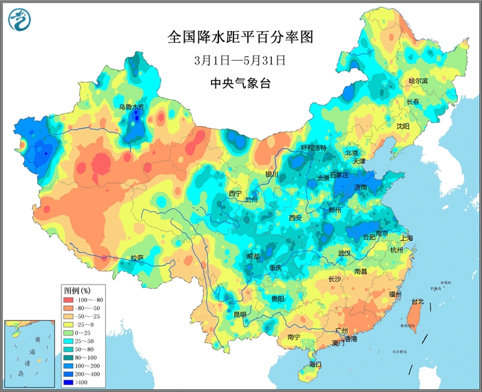 原因主要還是西太平洋副熱帶高壓系統強度偏強,面積偏大,脊線位置偏北、西伸脊點位置偏西,來自西太平洋的暖濕氣流向我國南方輸送水汽進程受阻,南方降水偏少,梅雨進程推遲。