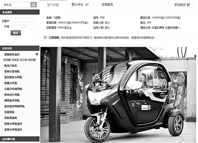 如淘寶上一家電動車銷售商家就直言標注:“此車不能辦理牌照,也不需要駕照,請根據當地實際政策購車,不能因上牌問題退貨?!?/p>