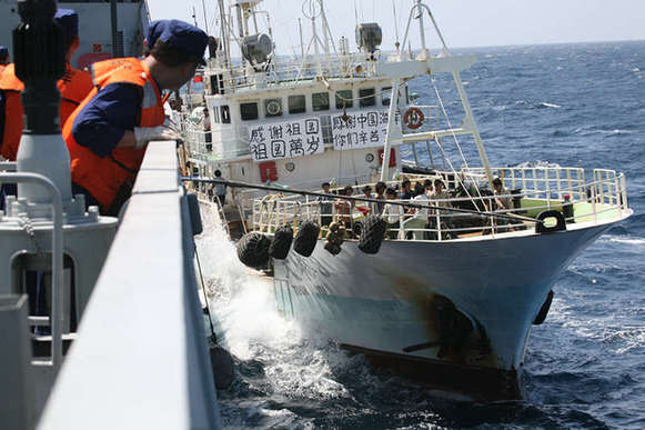 2009年2月9日,執(zhí)行首批護(hù)航任務(wù)期間,海口艦接護(hù)“天裕8號(hào)”。