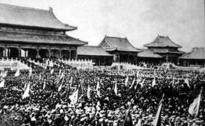 圖示:1945年9月,北平(今北京)各界民眾慶??箲饎倮?。