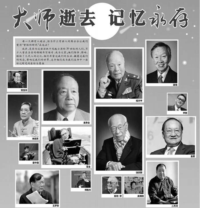 2018年,離我們而去的名人似乎有點多,霍金、饒宗頤、李敖、程開甲、單田芳、金庸、二月河……一個個熟悉名字的遠去,讓很多人內(nèi)心涌起陣陣離別的惆悵。