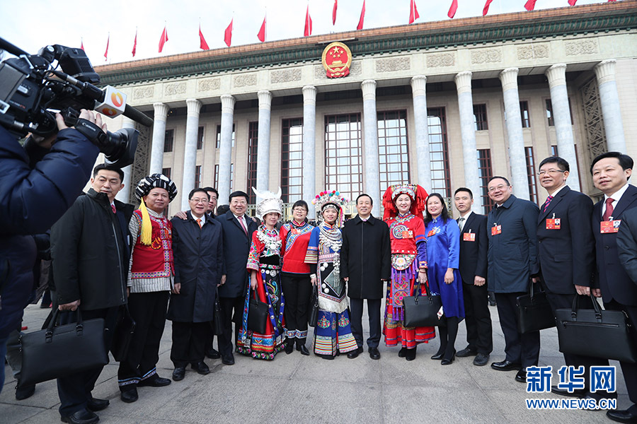 3月5日,第十三屆全國人民代表大會第一次會議在北京人民大會堂開幕。這是代表們在人民大會堂前合影。 新華網/中國政府網 翟子赫攝