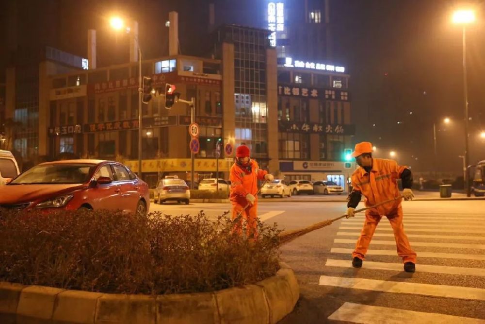 成都,環衛工人開始了一天的工作。新華網發(曹鵬 攝)