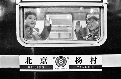 北青報記者1月2日買票時發現,1月3日的6451次已無坐票。鐵路車迷范紀萍介紹,這趟車平時基本都有座,由于車迷收藏車票,才將最后一天的坐票搶空。自從6451/6452次停運的消息傳出,最近半個月經常有人來拍照留念,而昨晚最后一趟車,告別的氣氛達到頂點,候車室內乘客明顯比平時多,而且大多端著相機。上百位鐵路車迷主要來自京津冀三地。檢票后,車迷們涌進站臺,不是著急占座,而是圍著6451次拍個不停。有的車迷甚至自制了6451次貼在車廂兩側的告示牌,雙手高舉站在機車前合影留念。