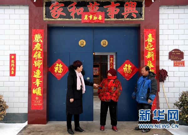 新春剛過,瑞雪降中原。一片銀裝素裹間,一個暗紅色的門樓上“向陽莊村”幾個金色大字格外醒目,門樓下葛樹芹正一邊掃雪一邊大聲地和村民們聊著天,歡聲笑語間滿滿的是幸福年味。