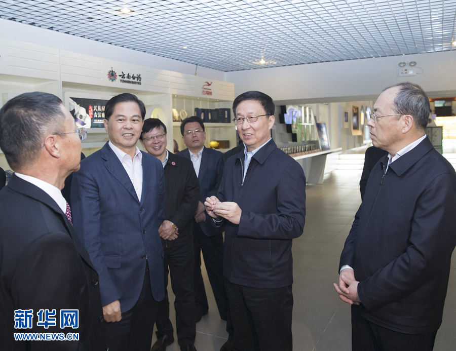 韓正到云南白藥集團(tuán),考察生產(chǎn)車間,了解生產(chǎn)情況,參觀云南白藥博物館。韓正指出,推動國有企業(yè)改革發(fā)展,要強化品牌建設(shè),打造具有國際影響力的民族品牌;要加大研發(fā)投入,掌握關(guān)鍵核心技術(shù);要完善治理體系和治理結(jié)構(gòu),推進(jìn)混合所有制改革。