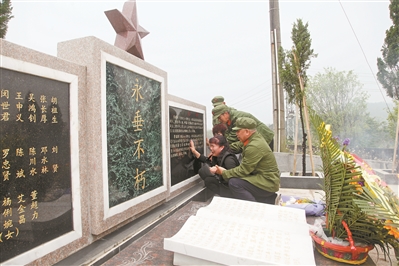 30多年的漫長(zhǎng)等待之后,親人第一次來(lái)梁瑞聰烈士墓前祭奠掃墓。梁英海 攝