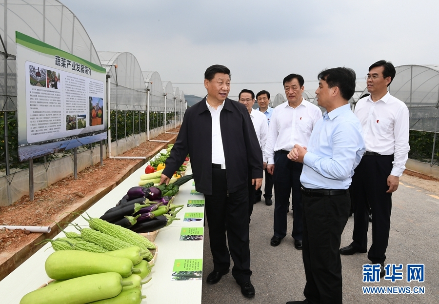 5月20日至22日,中共中央總書記、國家主席、中央軍委主席習近平在江西考察,主持召開推動中部地區崛起工作座談會并發表重要講話。這是習近平在贛州市于都縣梓山富硒蔬菜產業園考察調研。 新華社記者 謝環馳 攝