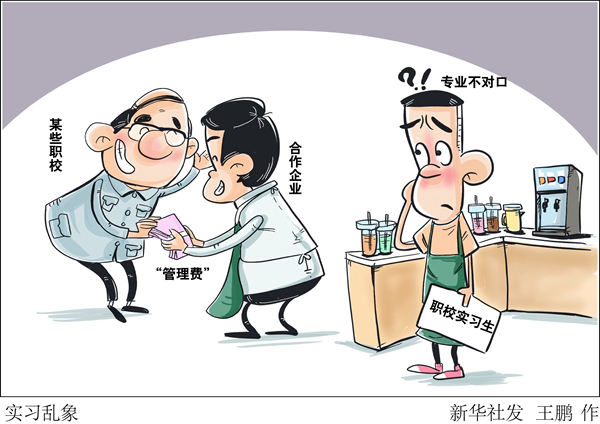 學機電工程的卻被安排去賣飲料,送一名學生去企業“實習”能拿上千元“管理費”……實習本是職業學校技能人才培養的重要一環,但記者調查發現,有的職校隨意安排與專業不相關、不相近的實習崗位,有的職校把學生當成廉價勞動力“出賣”給企業。
