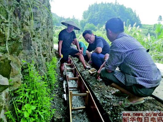 扶貧干部在省級(jí)貧困村虎皮溪村實(shí)地查看渠道灌溉情況。記者白田田攝